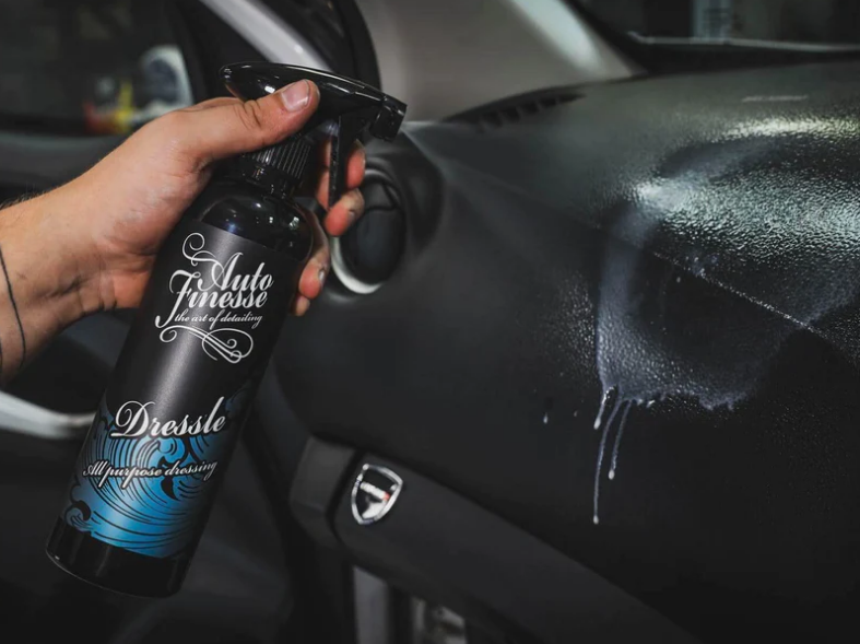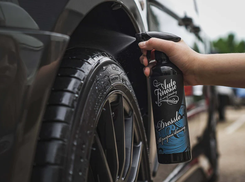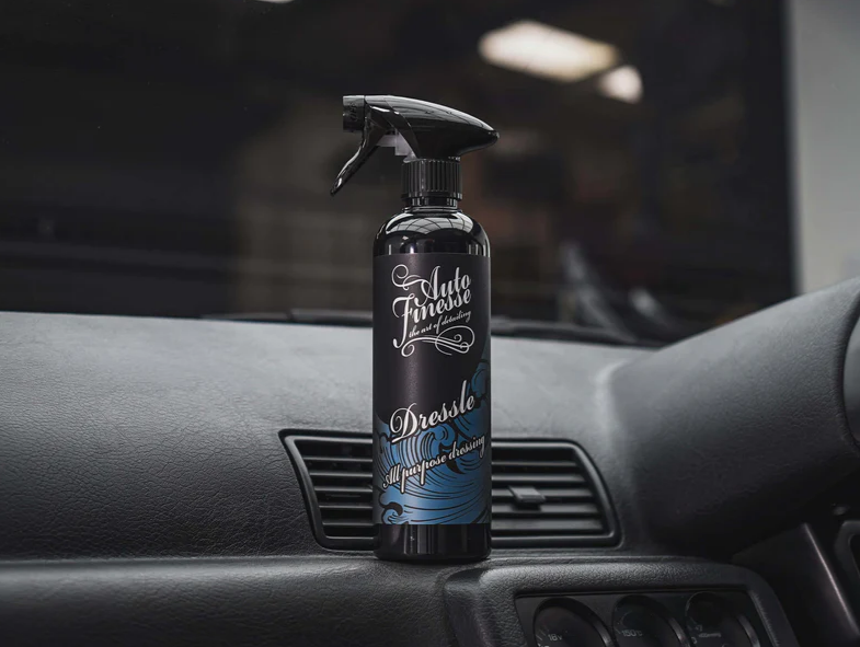 Auto Finesse Dressle All Purpose Dressing je moderní ochrana plastů a vinylových částí automobilu s tmavým, saténovým efektem. Dressle je skvělý produkt, který vylepší vzhled interiérových plastů vašeho vozidla. Zanechává nelepkavý, nemastný povrch a příjemný, přirozeně matný vzhled. UV faktor zabraňuje blednutí a udržuje všechny plasty a vinylové části bohaté a svěží, a to po dobu až 6 měsíců. Lze ho použít v motorovém prostoru a v interiéru na plastové a vinylové části. Díky svým vlastnostem je i ideálním přípravkem pro ošetření a impregnaci vinylových střech kabrioletů. Neobsahuje žádné vosky, oleje nebo ropné destiláty. Tak jako všechny produkty Auto Finesse, tak i Dressle patří mezi profesionální produkty určené pro zkušené detailery. Díky vysoké efektivitě a snadnosti aplikace dosáhne s tímto přípravkem skvělých výsledků i začátečník.