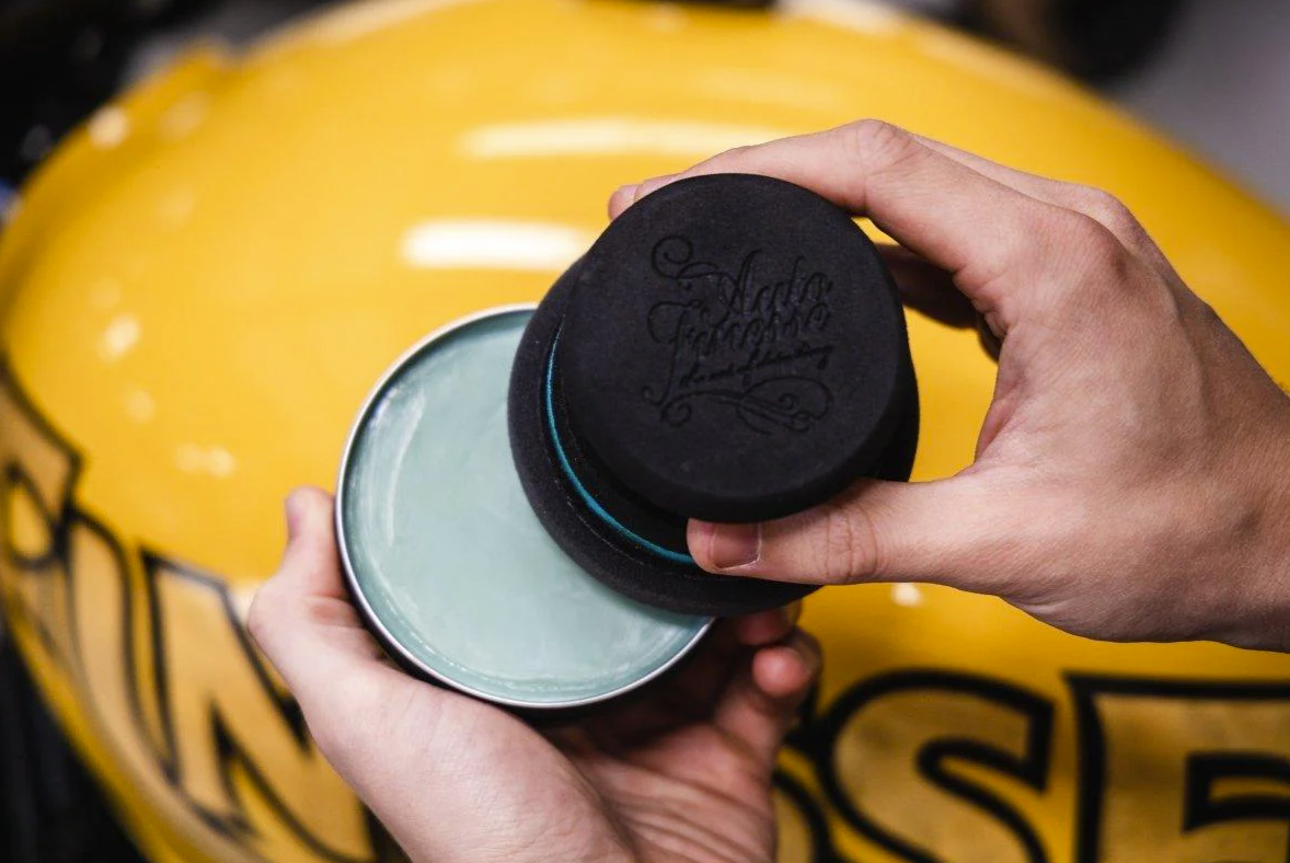 - Pěnovým aplikátorem nanášejte tenký film vosku krouživými pohyby.