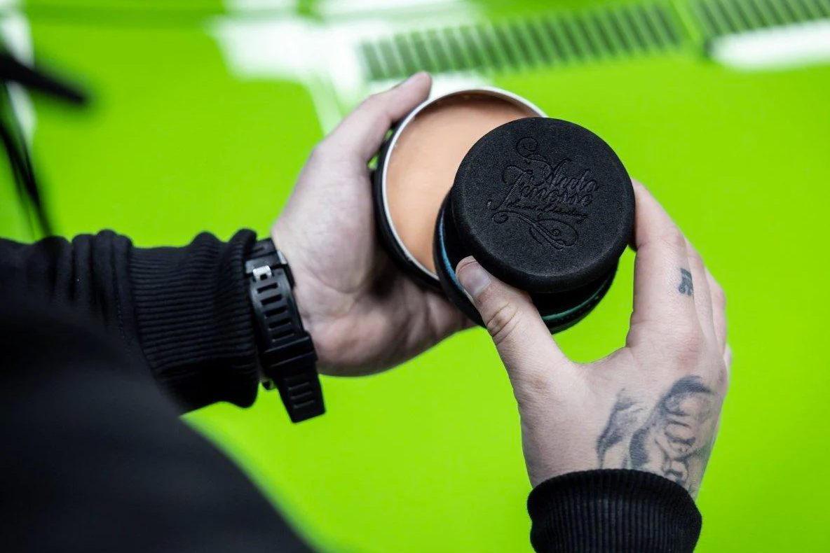 - Pěnovým aplikátorem nanášejte tenký film vosku krouživými pohyby.