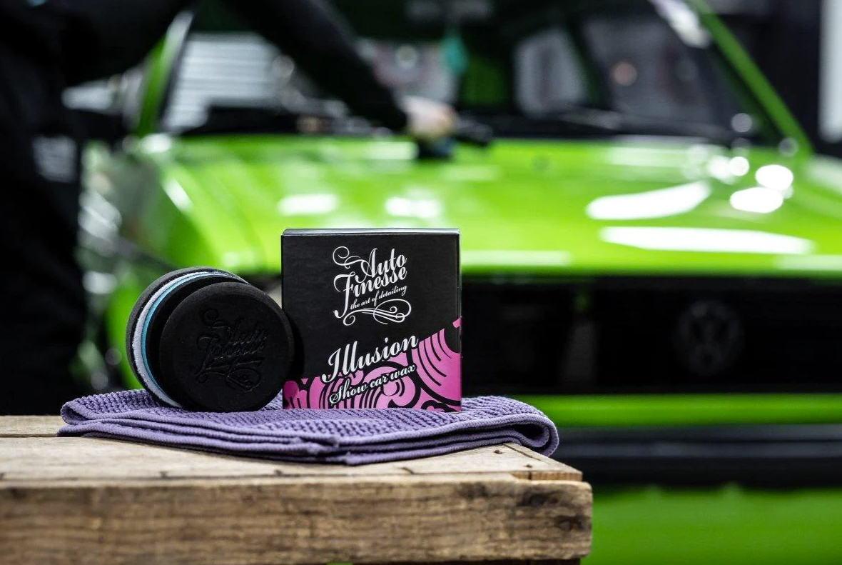 Illusion je ručně vyráběný tuhý vosk ve Velké Británii, kde je přísně dodržován poměr pravé brazilské sušiny karnauby, syntetických polymerů a olejů. Vosky se používají k ošetření vozidla proti působení negativních vlivů prostředí. Důležitá je odolnost proti UV, vodoodpudivost, odolnost proti kyselým dešťům, ptačímu trusu atd. Auto Finesse Illusion obsahuje 48 % T1 třídy brazilského karnaubského vosku, přičemž zbývající podíl je tvořen ze syntetických polymerů a lesk zintenzivňujících olejů. Tento vosk byl vyvinut pro opravdu extrémní hloubku laku a extrémní lesk. Vytváří iluzi vícevrstvého bezbarvého laku. Nejjednodušší aplikace ze všech vosků Auto Finesse. Obsah netěkavých součástí vosku dodává Illusion životnost 2 až 3 měsíců od aplikace, a to na denně používaném automobilu. Perfektní vodoodpudivost vás přímo nutí sledovat při dešti stékající kapky vody, které se mění v malé kuličky, nezanechávající vodní spot na laku. Vosky jsou vhodné pro všechny barvy laků. Vhodné jsou pro použití jak na automobilech, tak i motocykech.