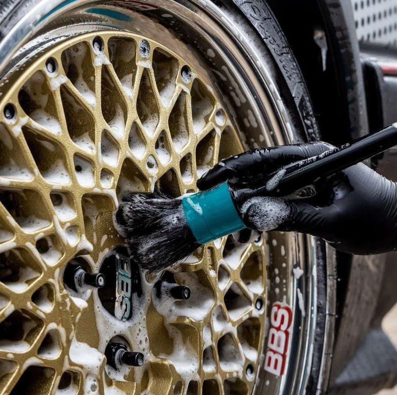 - U silně znečištěných kol použijte detailingový štětec a důkladně vyčistěte kola a pneumatiky.