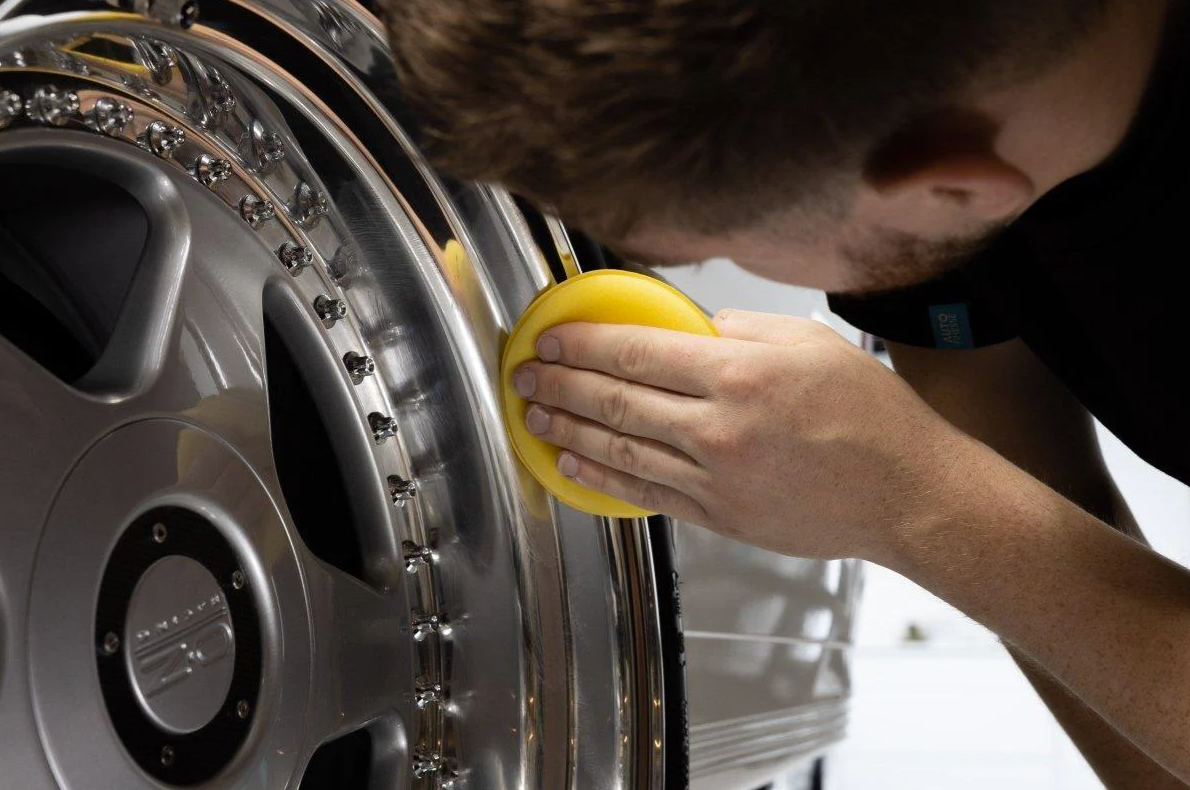 - Pečlivě kola umyjte, máte-li na kolech již zapečený brzdový prach, použijte Auto Finesse Iron Out, v ráfcích jemně promněte detailingovým štětcem.
