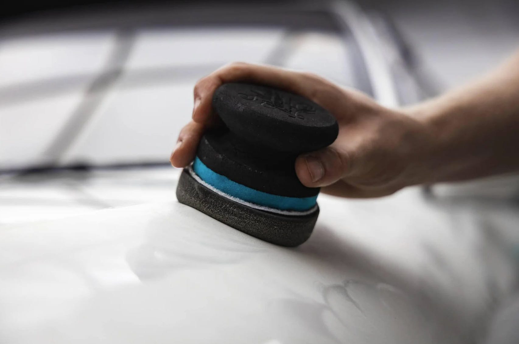 - Pěnovým aplikátorem nanášejte tenký film vosku krouživými pohyby.