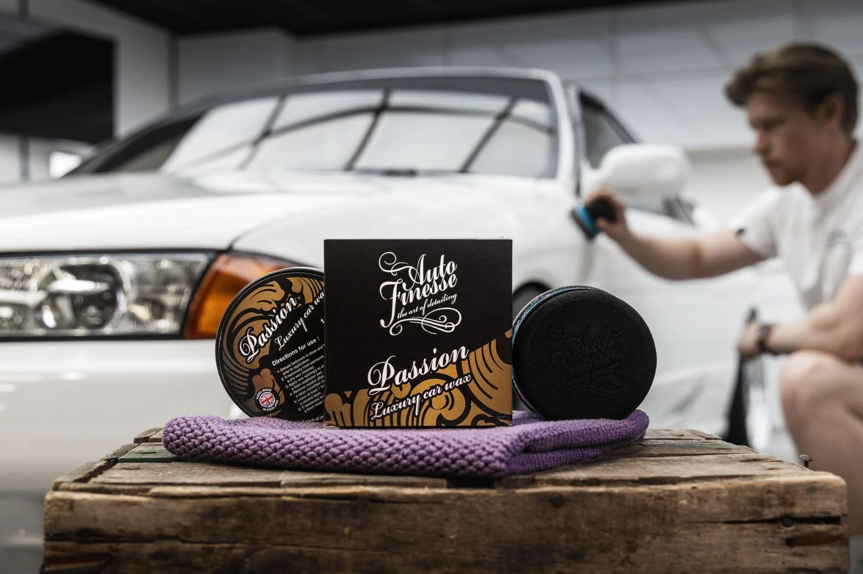 Passion je ručně vyráběný vosk ve Velké Británii, kde je přísně dodržován poměr pravé brazilské sušiny karnauby, včelího a kandelilového vosku. Vosky jsou používány k ošetření vozidla proti působení negativních vlivů přírody. Důležitá je odolnost vůči UV záření, vodoodpudivost, odolnost proti kyselým dešťům, ptačímu trusu atd.Auto Finesse Passion obsahuje 45 % T1 třídy brazilského karnaubského vosku, přičemž zbývající podíl je tvořen z přírodního včelího vosku, kandelilového vosku a oleje. Představuje opravdové synonymum hloubky a optické jasnosti. Obsah netěkavých součástí vosku dodává Passion životnost až čtyři měsíce od aplikace, a to na denně používaném automobilu. Perfektní voděodolnost přímo nutí sledovat při dešti kapky vody, které se mění v malé kuličky stékající beze stop vodního spotu z automobilu. Auto Finesse Passion Carnauba Wax je vhodný pro tmavší barvy laku. Především černá, zelená, červená, tmavě modrá apod. Vhodné pro použití jak na automobily, tak i motocykly.