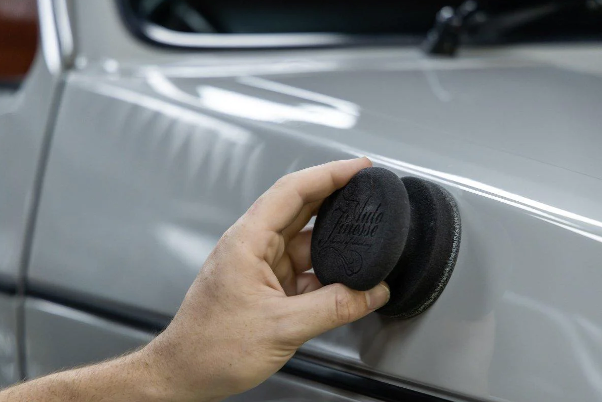 - Pěnovým aplikátorem nanášejte tenký film vosku krouživými pohyby.