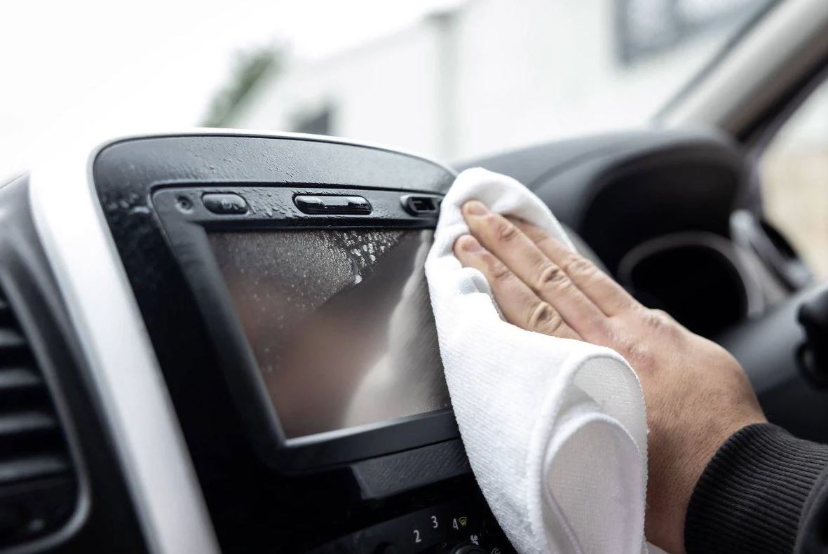 - Na místa, která jsou hůře dostupná, nastříkejte na mikrovláknovou utěrku a čistěte.