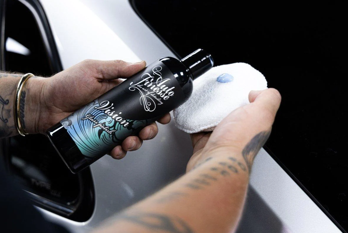 Auto Finesse Vision Glass Polish obsahuje směs lehkých abraziv a hloubkových čisticích prostředků navržených k čištění, odmašťování a navracení průzračnosti oken jak z vnitřní, tak vnější strany. Abrazivní vlastnosti této husté, viskózní kapaliny, která je speciálně navržena tak, aby poskytovala dvojitý účinek mechanického a chemického odstraňování skvrn, fyzicky drhne a leští povrchy na mikroskopické úrovni, aby nejen odstranily odolné ("zažrané") nečistoty, ale také odstranily lehké škrábance a vodní spot. Spojení několika speciálně vyvinutých čisticích prostředků zároveň rozkládá nejodolnější mastnotu a nečistoty tak, že je lze jednoduše setřít. Se silnými čisticími schopnostmi, ale dostatečně jemnými pro použití na tónovaná okna, je Vision pokročilou evolucí přípravků na leštění skla. Nikdy nebylo snazší proměnit "unavená" okna a dát jim nový vzhled. Je to pokročilá leštěnka pro odstranění odolných skvrn ze skla. Je perfektní pro přípravu oken před aplikací tekutých stěračů či keramických ochran. Tak jako všechny produkty Auto Finesse, tak i Vision patří mezi profesionální produkty určené pro zkušené detailery. Díky vysoké efektivitě a snadnosti aplikace dosáhne s tímto přípravkem skvělých výsledků i začátečník.
