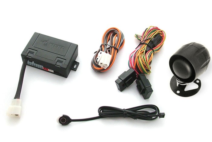 řídící jednotka, siréna 20W, kabelový svazek, LED servisní tlačítko, návod k použití, kapotový kontakt