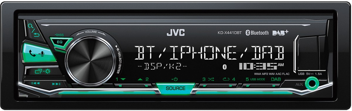 1DIN, bez CD mechaniky, USB vstup, DAB, multiclor posvícení, vestavěný bluetooth, umí FLAC