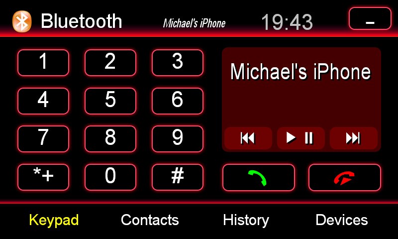 - Podpora Bluetooth handsfree včetně načítání telefonního seznamu a bezdrátového přehrávání hudby pomocí A2DP