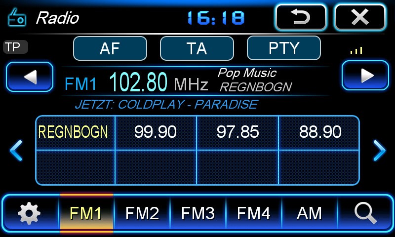 - Rádio AM / FM s funkcí RDS (podporuje Evropu, Severní Ameriku, Asii)