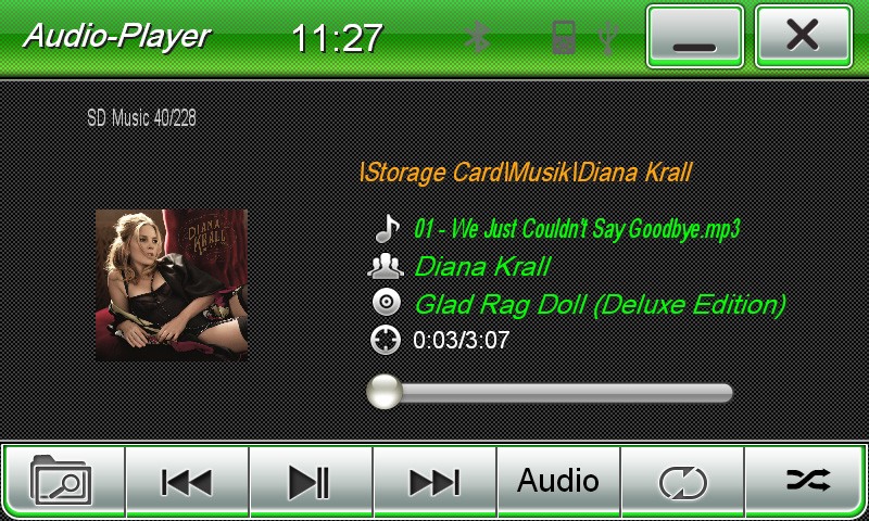 | Audio Streaming přes BluetoothA2DP (Advanced Audio Distribution Profile) je profil Bluetooth, který umožňuje bezdrátový přenos stereo zvuku ze zdroje A2DP, typicky mobilního telefonu nebo počítače, k A2DP přijímači (autorádio). Tato zařízení obvykle také podporují profil AVRCP. | Ano |