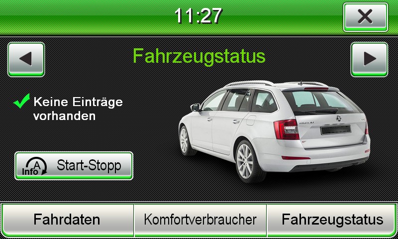 - Možnost nastavení vozu, světla, centrální zamykání, parkovací asistent, stěrače, kontrola tlaku v pneumatikách a další