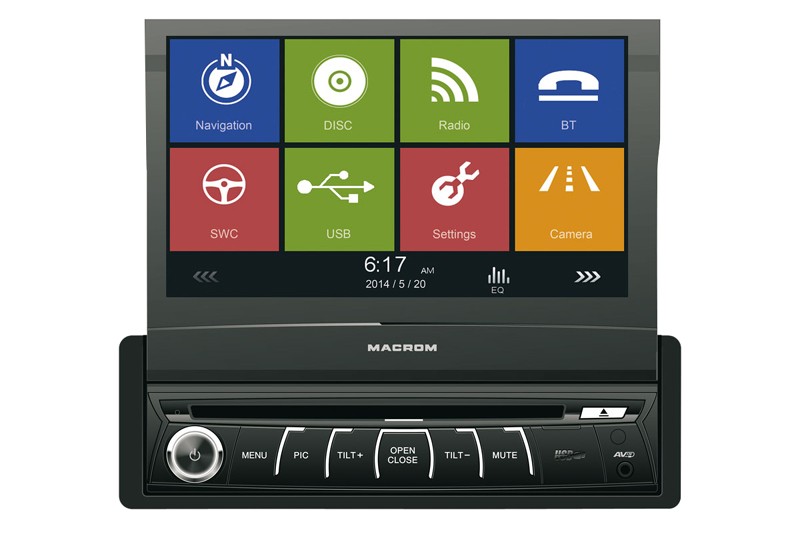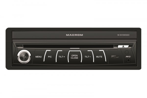 MACROM M-DVD6560 je multimediální jednotka s vestavěnou DVD mechanikou a USB vstupem. Přístroj je vybaven motorově vysunovacím, dotykově ovládaným monitorem 7 palců, vstupem pro couvací kameru (po zařazení zpátečky), vstupem pro ovládání z volantu. MACROM obsahuje vestavěnou GPS navigaci a Hands free sadu. Pomocí 1DIN instalačního rámečku lze umístit do většiny typů automobilů s 1DIN otvorem pro autorádio.
