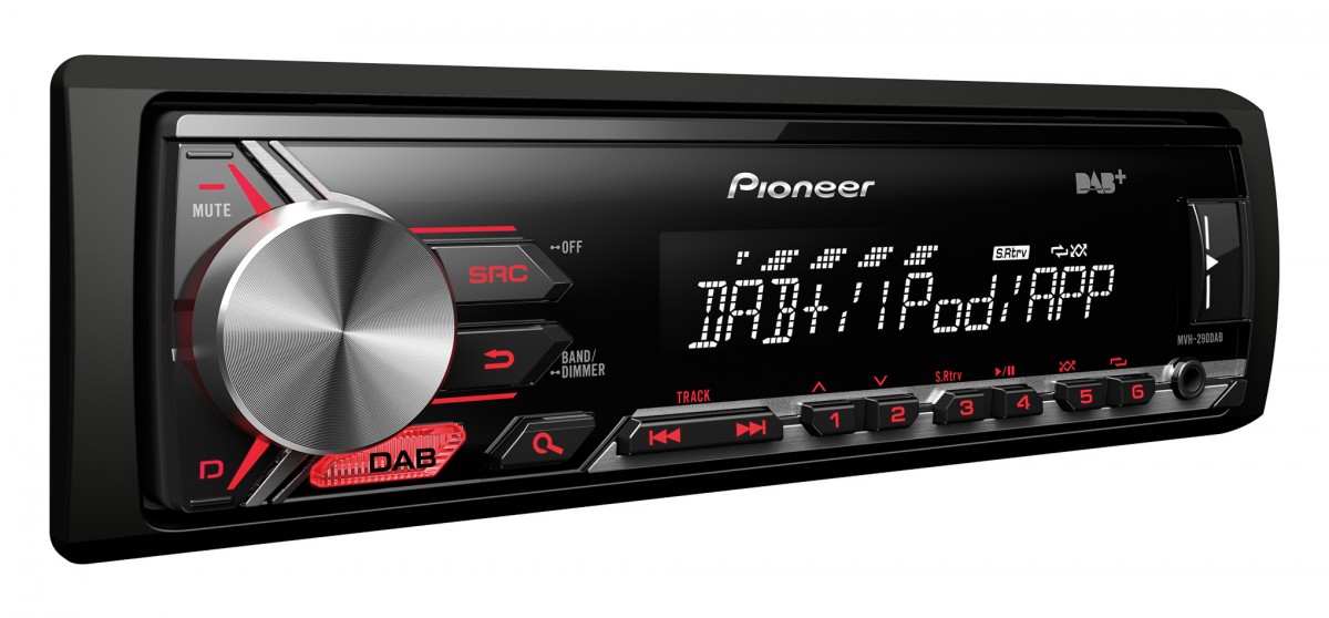 Autorádio speciálně vyvinuté pro digitální hudbu, je vybavené FM, DAB/DAB+ tunerem, který vám umožní poslouchat nepřerušovaný křišťálově čistý zvuk. Anténa CA-AN-DAB.001 není součástí balení, je nutné ji dokoupit zvlášť. Dále můžete přehrávat skladby z vašeho iPodu či chytrého telefonu iPhone a Android nebo připojit další hudební zdroje pomocí USB a AUX vstupu. Auto radio Pioneer MVH-290DAB disponuje dvěma RCA výstupy pro připojení zesilovače či subwooferu a nabídne vám výkon 4 x 50 W MOSFET.
