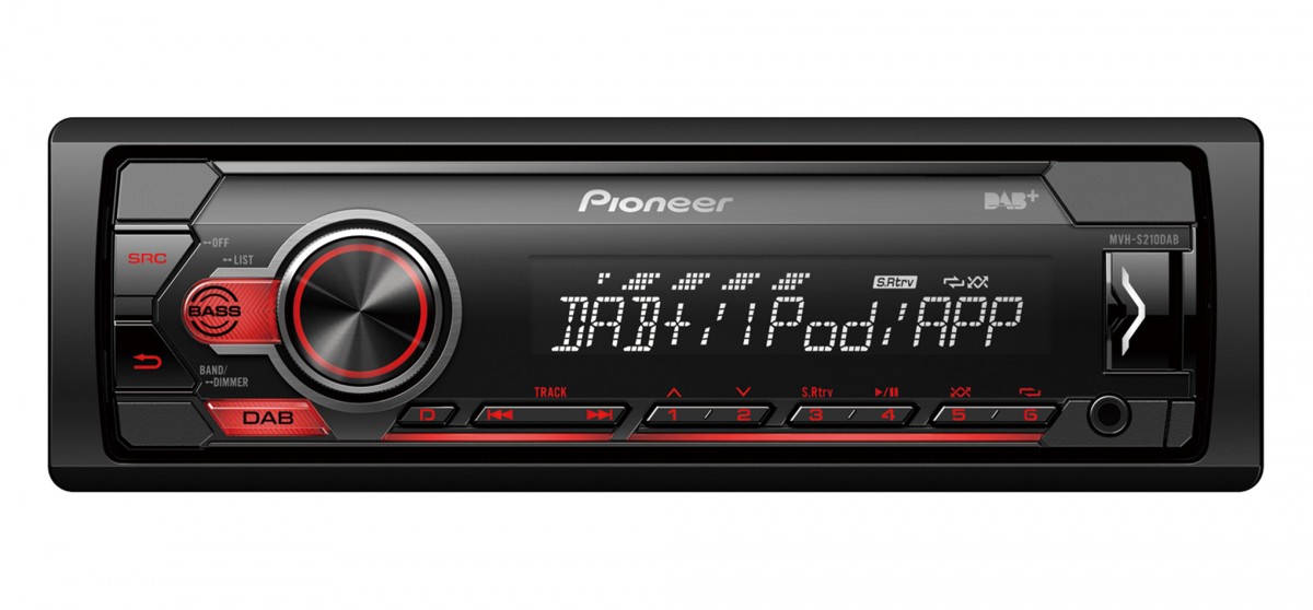 Autorádio speciálně vyvinuté pro digitální hudbu, je vybavené FM, DAB/DAB+ tunerem, který vám umožní poslouchat nepřerušovaný křišťálově čistý zvuk. Anténa CA-AN-DAB.001 není součástí balení, je nutné ji dokoupit zvlášť. Dále můžete přehrávat skladby z vašeho iPodu či chytrého telefonu iPhone a Android, nebo připojit další hudební zdroje pomocí USB a AUX vstupu. Auto radio Pioneer MVH-S210DAB disponuje dvěma RCA výstupy pro připojení zesilovače či subwooferu a nabídne vám výkon 4 x 50 W MOSFET.| Katalogové číslo | MVH-S210DAB |