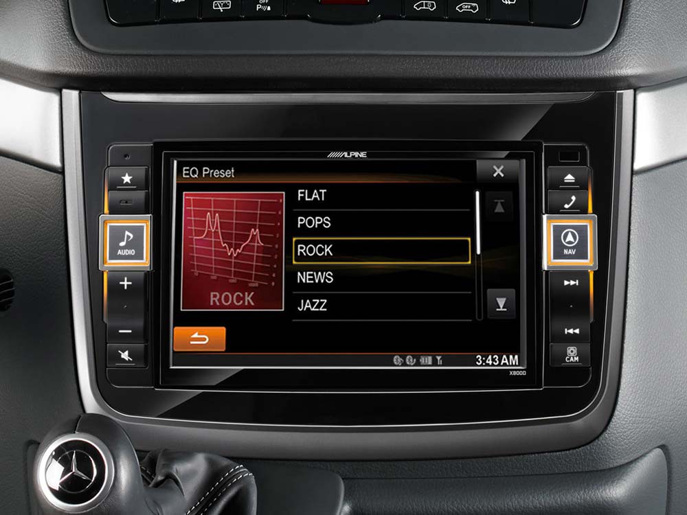 Alpine X800D-V je pokročilá navigační jednotka s 8" dotykovým displejem, DAB+ tunerem, Bluetooth, technologií MirrorLink, HDMI vstupem, 3 páry RCA výstupů a DSP procesorem pro vozy Mercedes Benz Vito (V639) a Viano (W639). Všechny komponenty jsou navrženy tak, aby se perfektně hodily do stávajících umístění a dokonale integrovaly s elektronickými systémy vozidla. Dokonalá shoda s vozidlem a s prémiovými komponenty. Výkon bez kompromisů!
