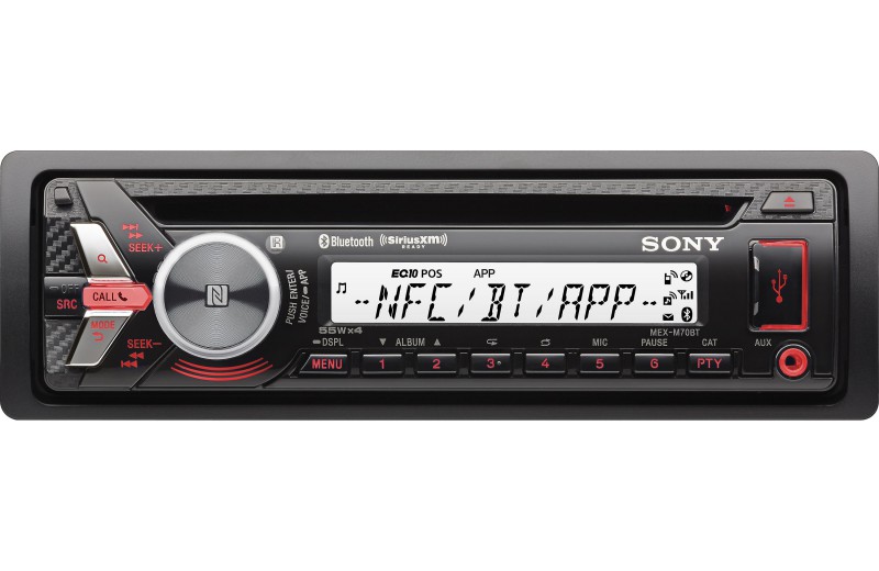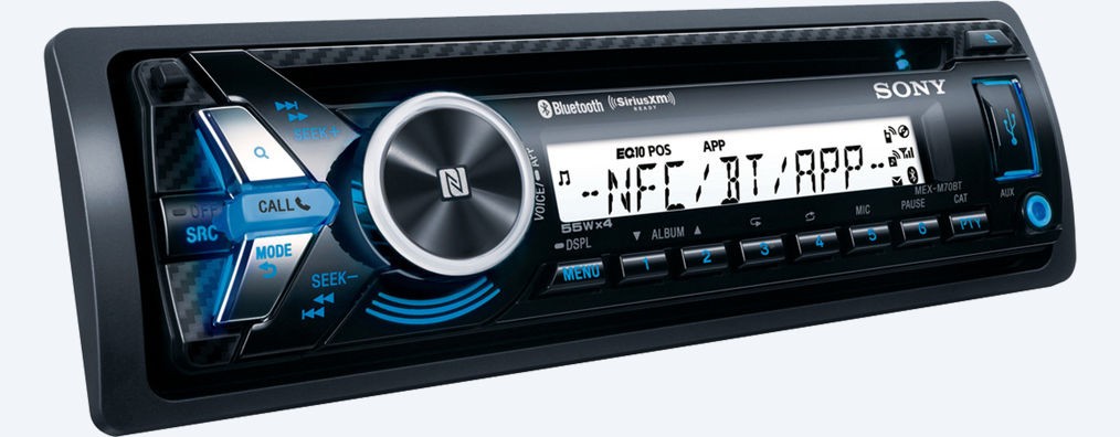 Autorádio SONY rozměru 1DIN s CD přehrávačem, USB vstupem, s Bluetooth a NFC pro okamžité spárování s telefonem, s výstupním výkonem 4 x 55W, modré a červené podsvícení tlačítek, UV odolné, vodě odolné.