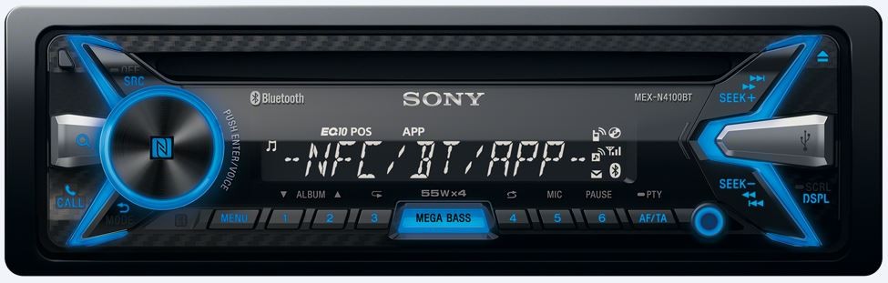 Autorádio SONY rozměru 1DIN s CD přehrávačem, USB vstupem, Bluetooth a NFC pro okamžité spárování s telefonem, s technologií DSEE a Clear Audio + a výstupním výkonem 4 x 55W.