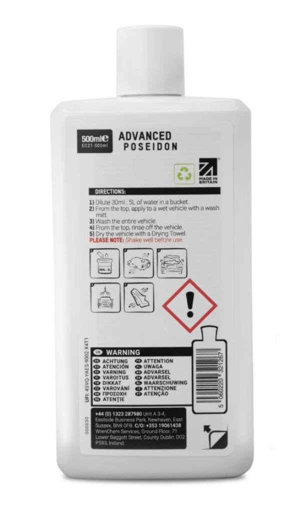 Technologie autošamponu ValetPRO Advanced Poseidon Car Wash používá speciální směs aniontových povrchově aktivních látek a polymerů k snadnému odstranění nečistot. Po oplachu navíc zanechá ochranný film zvyšující lesk. Tato ochranná vrstva udržuje povrch laku déle čistý a zároveň prodlužuje ochranu vosku nebo sealantu. Ředí se v poměru 30 ml šamponu do 5 litrů vody.