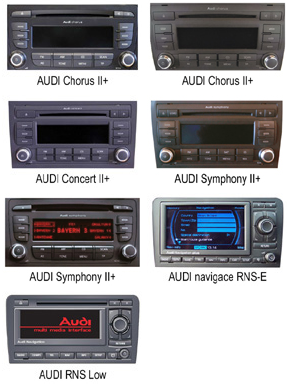 - S OEM autorádiem Chorus II+ / Concert II+ / Symphony II+ nebo navigací: RNS-E / RNS-Low s FAKRA konektorem.
