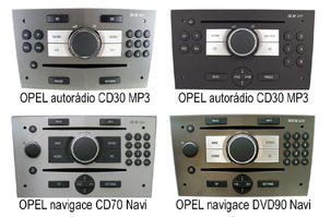 - CD30 MP3 / CDC40 OPERA / CD70 NAVI / DVD 90NAVI s aktivovaným AUX vstupem*.