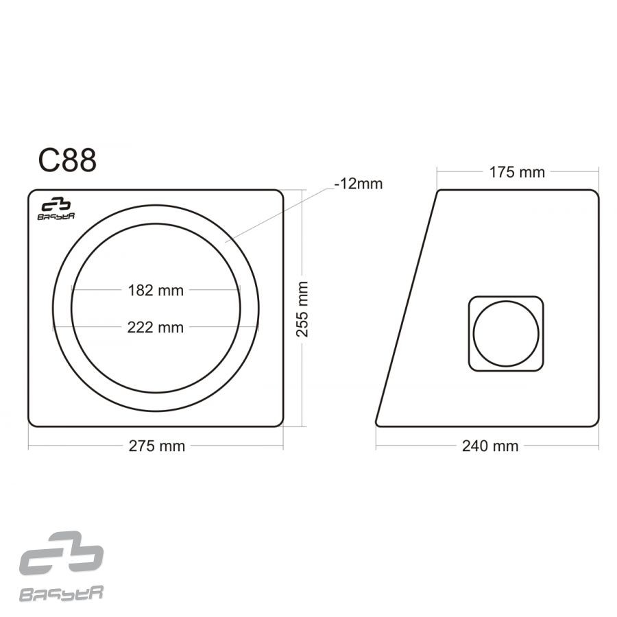 | Velikost otvoru pro subwooferOtvor pro danou průměrovou kategorii subwooferu. Pro 300mm subwoofer je díra nejčastěji cca. 28,3 cm. Montážní průměry subwooferů jsou obvykle normované čili není potřeba nic upravovat. | 20 cm (8") |