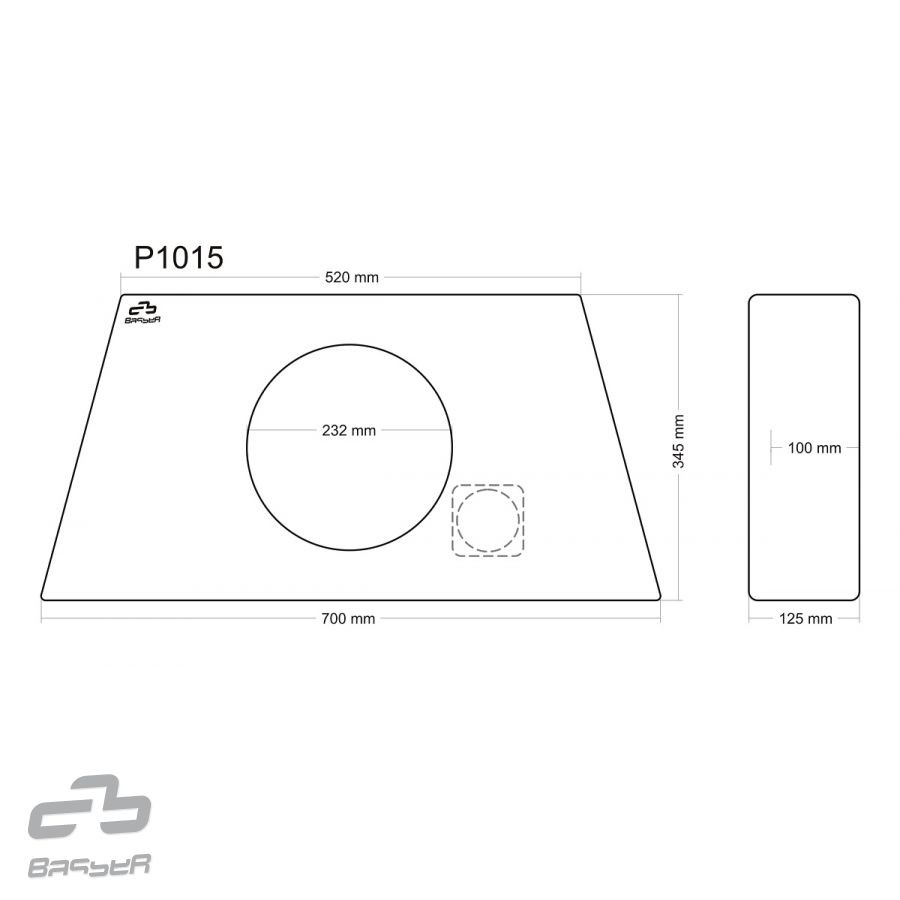 | Velikost otvoru pro subwooferOtvor pro danou průměrovou kategorii subwooferu. Pro 300mm subwoofer je díra nejčastěji cca. 28,3 cm. Montážní průměry subwooferů jsou obvykle normované čili není potřeba nic upravovat. | 25 cm (10") |