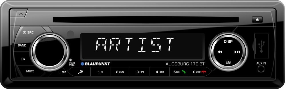 Blaupunkt Augsburg 170BT má dobře čitelný displej a bílé podsvícení tlačítek. O kvalitní příjem rádiového signálu se postará vysoce citlivý tuner, který nabízí příjem rozhlasového vysílání v pásmech FM a AM. Díky integraci funkce RDS se na displeji zobrazí informace - datum a čas, aktuálně naladěná stanice/program.