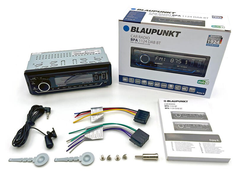 Blaupunkt BPA 1124 DAB BT je kompaktní 1DIN autorádio, které nabízí technologie pro moderní audiozážitek během každé jízdy. Díky digitálnímu DAB+ tuneru si můžete vychutnat stabilní a čistý příjem digitálních rádiových stanic, zatímco FM/AM tuner s RDS poskytuje přístup i k tradičnímu rozhlasovému vysílání s dopravními informacemi a automatickým laděním. Autorádio disponuje Bluetooth konektivitou pro hands-free volání i bezdrátové streamování hudby z mobilního telefonu nebo jiného zařízení s podporou A2DP, přičemž na displeji se zobrazuje název právě hrané skladby. Součástí jsou 2× USB porty - jeden pro přehrávání hudby a druhý pro nabíjení smartphonu, a AUX vstup pro připojení externích audio zařízení.