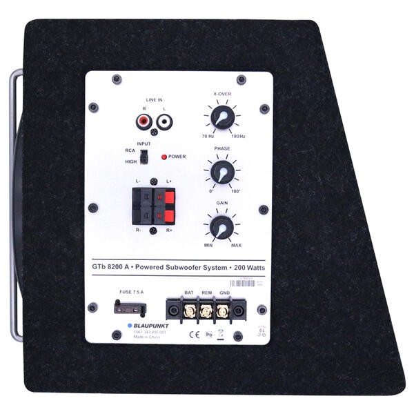 Instalace je jednoduchá a flexibilní - zařízení nabízí vstupy RCA (Cinch) i high-level (vysokoúrovňové) a automatické zapínání po detekci signálu. Subwoofer také disponuje nastavením crossoveru, regulací fáze a úrovně signálu (Gain), takže jej snadno přizpůsobíte vašemu audio systému a osobnímu vkusu. Blaupunkt GTB 8200 A je ideální volbou pro řidiče a audio nadšence, kteří chtějí výrazně vylepšit basovou složku svého zvukového systému ve voze, ať už jde o OEM nebo aftermarket systém, bez nutnosti externího zesilovače.