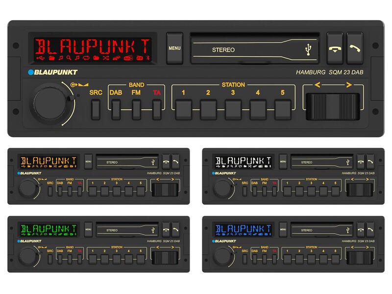 Jedinečnou vlastností je Variocolour LC displej s 4 096 barvami, díky kterému lze podsvícení sladit s interiérem vozu a vytvořit tak personalizovaný vzhled palubní desky. Konstrukce s krátkou instalační hloubkou je ideální i pro vozy s omezeným prostorem za palubní deskou, jako jsou klasická auta a youngtimery. Nastavení rádio si navíc uchovává i při odpojení baterie, což zvyšuje komfort používání. Blaupunkt Hamburg SQM 23 DAB je perfektní volba pro řidiče, kteří chtějí retro styl legendárního autorádia s moderními funkcemi pro rádio, Bluetooth připojení a přehrávání médií.