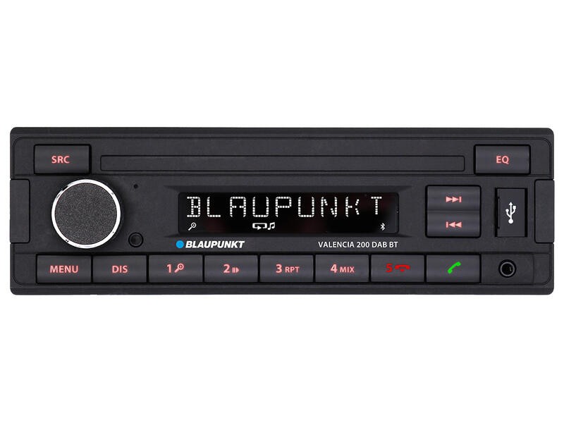 Blaupunkt Valencia 200 DAB BT je všestranné 1DIN autorádio, které kombinuje moderní technologie s intuitivním ovládáním a spolehlivostí značky Blaupunkt. S integrovaným digitálním DAB+ tunerem si užijete stabilní příjem širokého spektra digitálních rozhlasových stanic ve výborné kvalitě bez šumu a rušení, doplněný klasickým FM/AM tunerem s RDS funkcemi pro tradiční vysílání. Autorádio je vybaveno Bluetooth konektivitou s funkcemi hands-free telefonování a bezdrátového streamování hudby přímo z vašeho smartphonu, což zvyšuje komfort a bezpečnost během jízdy. Díky USB portu a AUX vstupu můžete pohodlně přehrávat digitální hudbu ve formátech MP3 a WMA z flash disku nebo externího zařízení.