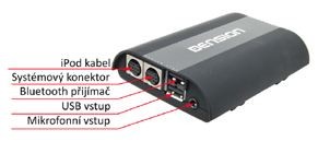 Bluetooth hands free sada umožňující přehrávání hudby z iPod / iPhone a USB zařízení prostřednictvím OEM autorádia