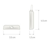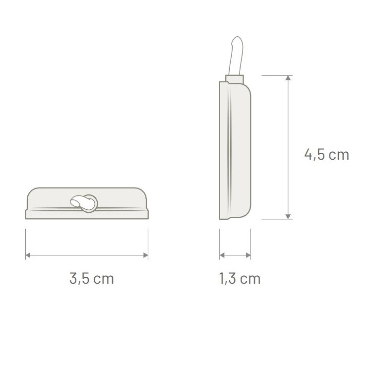 - Rozměry: 3,5 x 4,5 x 1,3 cm (Š x D x V).