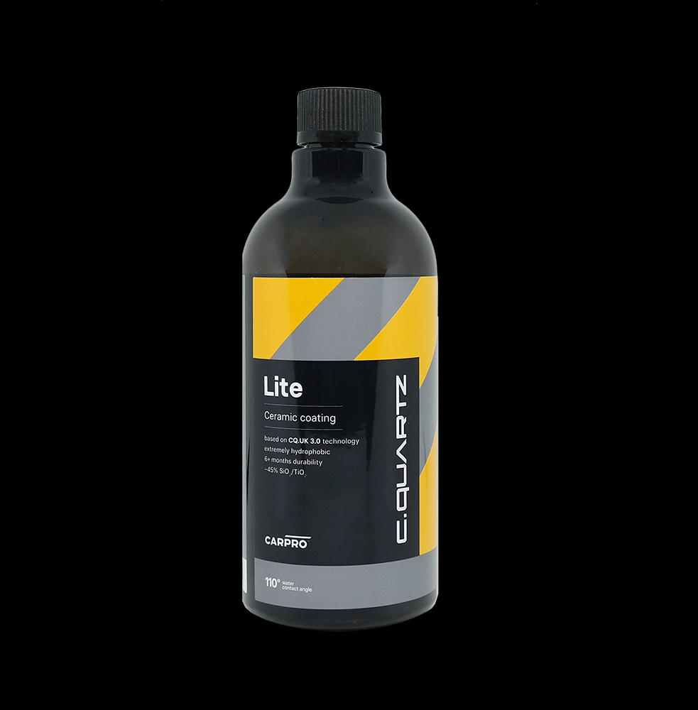 Car Pro CQuartz Lite je nový, uživatelsky přívětivý a snadno použitelný keramický povlak. „Lite“ je založen na úžasné technologii CQuartz UK Ceramic Coating, která se stala známou po celém světě. CQuartz Lite lze aplikovat jako samostatný keramický povlak, jehož životnost je delší než 6 měsíců, nebo jako posilnění pro stávající povlaky CQuartz. CQuartz Lite byl navržen pro ty, kteří nejsou připraveni na aplikaci profesionálních keramických povlaků, ale chtějí využít řadu výhod, které povlaky CQuartz nabízejí. CQuartz Lite překlenuje mezeru mezi permanentními vosky a povlaky CQuartz, které si mnozí oblíbili. CQuartz Lite znamená následné snazší čištění, odolnost vůči zbytkům hmyzu a chemikáliím s pH 3–14 a škodlivému UV záření. Má vynikající hydrofobní vlastnosti. Povlak lze aplikovat na jakýkoliv vnější povrch vozu včetně laku, plastů, kol a skla (kromě čelního skla) a stejně jako ostatní produkty CQuartz, lze CQuartz Lite použít na matné laky.