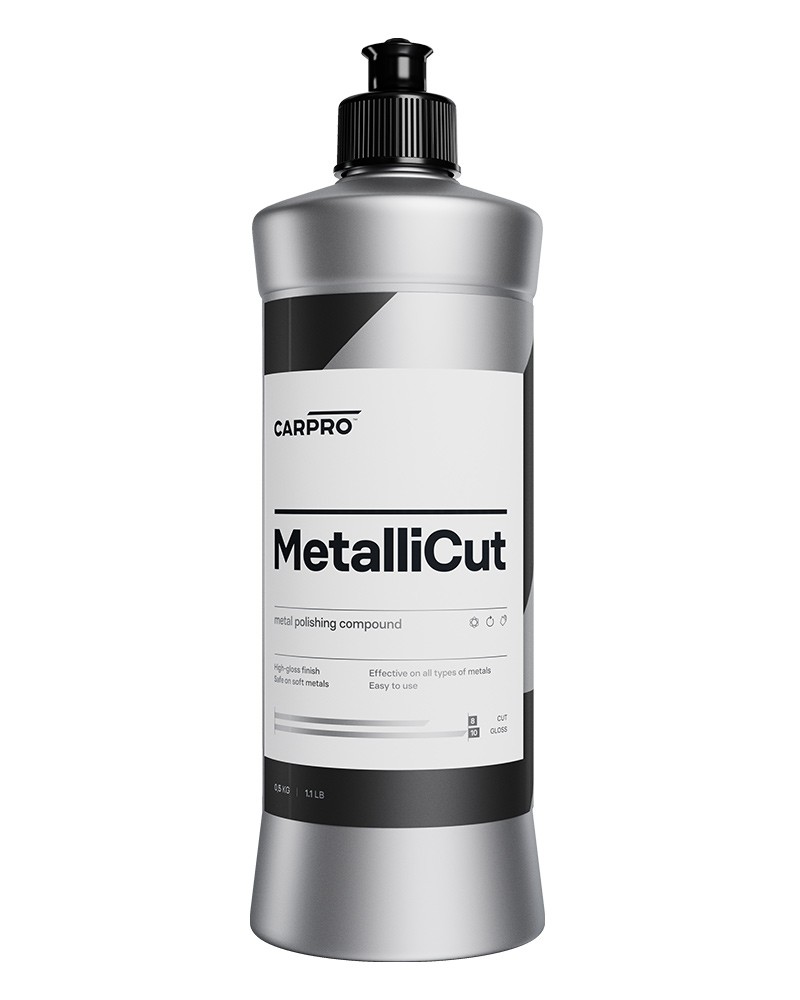 Unikátní a zároveň super výkonná lešticí pasta na kovy, která rychle odstraní škrábance nebo nejsilnější oxidaci (včetně rzi) a zanechává zrcadlový lesk. Je dostatečně účinná na tvrdé kovy, jako je nerezová ocel nebo chrom, ale zároveň šetrná k měkkým kovům, jako je hliník a další barevné kovy. Při vývoji této leštěnky na kovy se postupovalo zcela bez kompromisů. MetalliCut obsahuje několik druhů abraziv, včetně diamantového prachu. Rychle a účinně čistí, obnovuje a leští koncovky výfuku, chromovaná kola a dekorační lišty. Lze aplikovat ručně i strojně.
