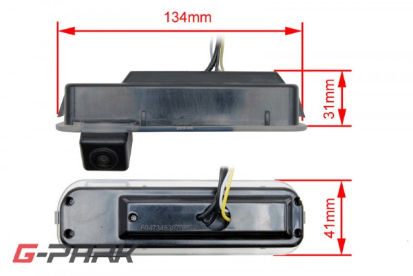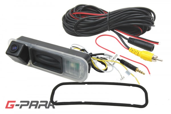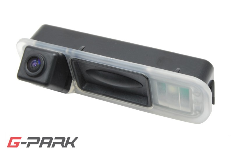 Parkovací kamera instalovaná do madle otevírání pátých dveří. Součástí kamery je LED světlo nahrazující původní osvětlení registrační značky.