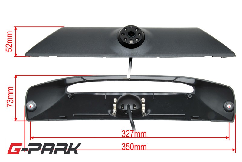 CCD parkovací kamera integrovaná ve třetím brzdovém světle instalovaném nad zadními křídlovými dveřmi. Kamera tvoří podložku pod originální brzdové světlo, které je nutné do ní instalovat.