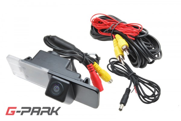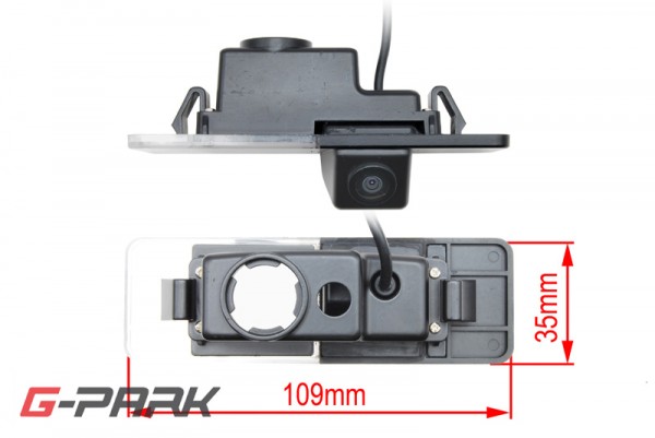 CCD parkovací kamera pro instalaci do lampy pro osvětlení zadní registrační značky. Součástí kamery je místo pro umístění patice se žárovkou z původního světla pro registrační značku.