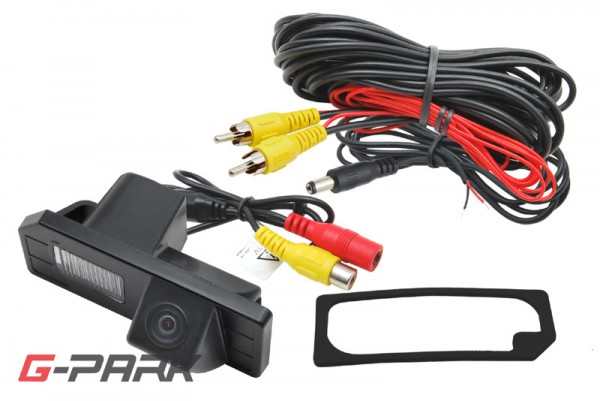 CCD parkovací kamera pro instalaci na místo osvětlení zadní registrační značky. Součástí kamery je místo pro umístění patice se žárovkou z původního světla pro registrační značku.