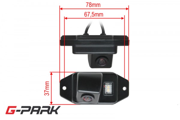 CCD parkovací kamera pro instalaci na místo osvětlení zadní registrační značky. Součástí kamery je LED světlo nahrazující původní osvětlení.