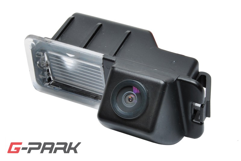 CCD parkovací kamera pro instalaci na místo osvětlení zadní registrační značky. Součástí kamery je místo pro umístění patice se žárovkou z původního světla pro registrační značku.