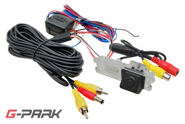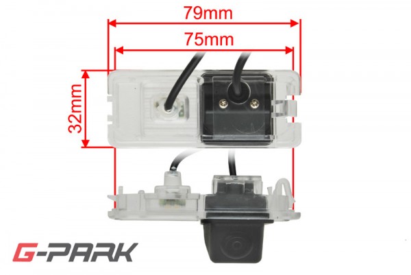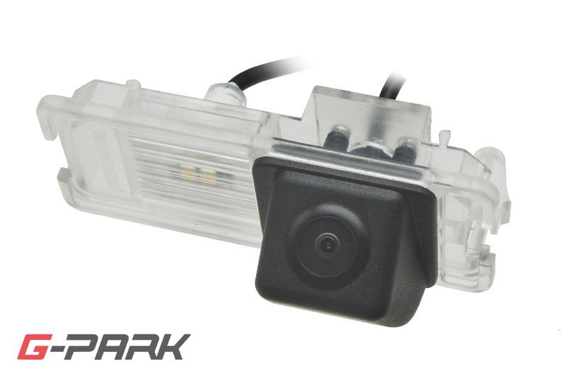 CCD parkovací kamera pro instalaci do lampy pro osvětlení zadní registrační značky. Součástí kamery je LED světlo nahrazující původní osvětlení.