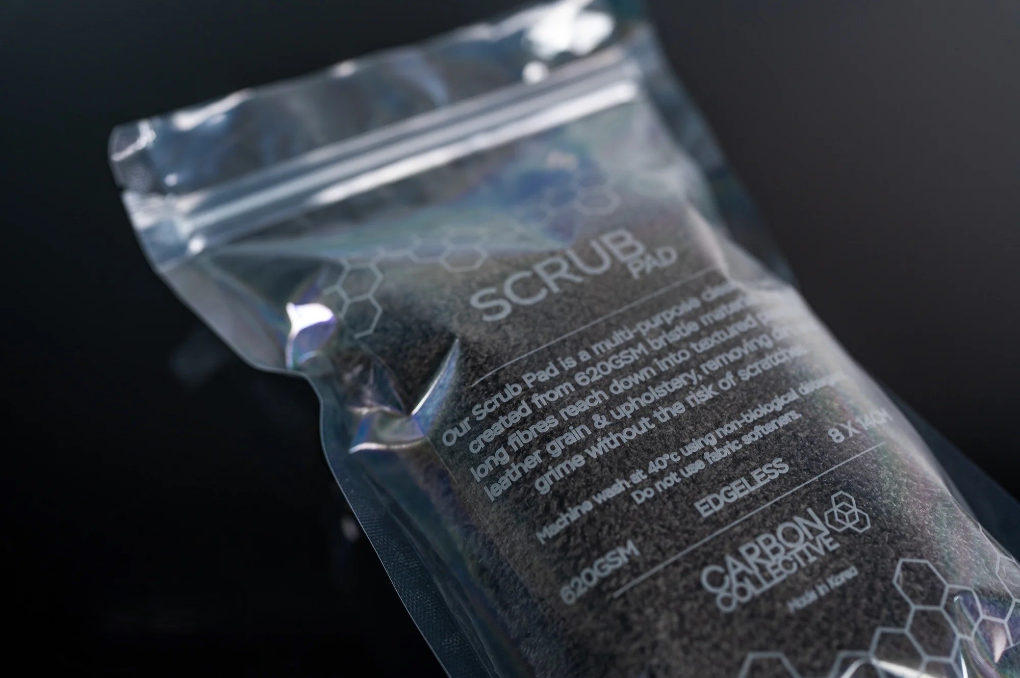 Čisticí houba (poštářek) Carbon Collective Interior Scrub Pad je vyrobena ze dvou typů vláken, tuhých a měkkých, které proniknou až do texturovaných plastů, kůže a čalounění. Tato houba odstraňuje nečistoty a špínu bez rizika poškrábání. I když je tato mycí houba určena pro vnitřní povrchy, funguje také velmi dobře na exteriéru vozidla. Hrubá dlouhá vlákna nabízejí silnější účiinek, uvolňují odolné nečistoty a skvrny na texturovaných plastech, gumě, pneumatikách, motoru a kolech. Odolné složení bez hran zajišťuje, že ji lze používat znovu a znovu.
