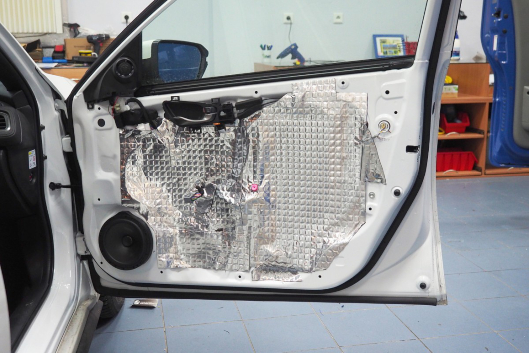tlumení dveří. Na vytlumení jedněch dveří použijte 3 až 4 pláty tlumení