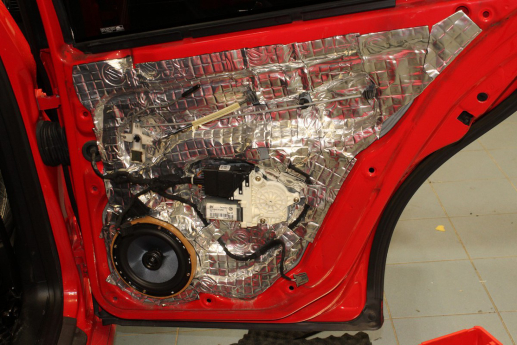 tlumení dveří. Na vytlumení obou předních dveří použijete 6 až 8 plátů tlumení