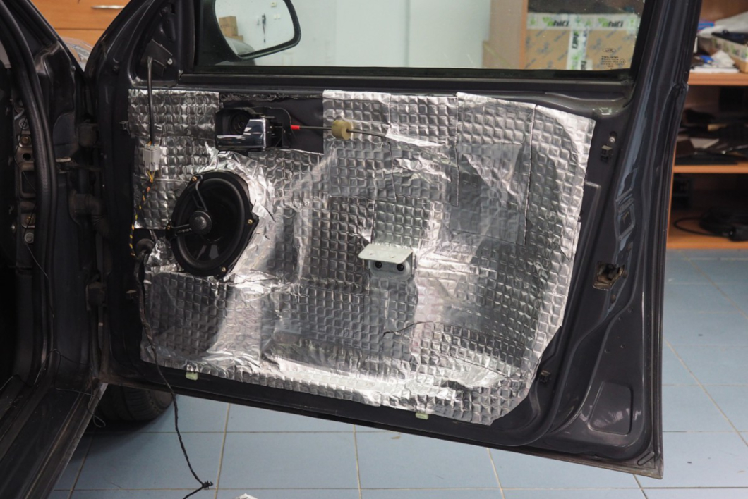 tlumení dveří. Na vytlumení jedněch dveří použijte 3 až 4 pláty tlumení
