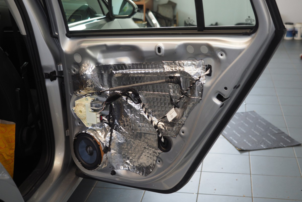 tlumení dveří. Na vytlumení jedněch dveří použijte 3 až 4 pláty tlumení