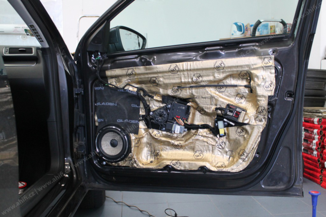 tlumení dveří. Na vytlumení předních dveří použijte 6 až 8 plátů tlumení
